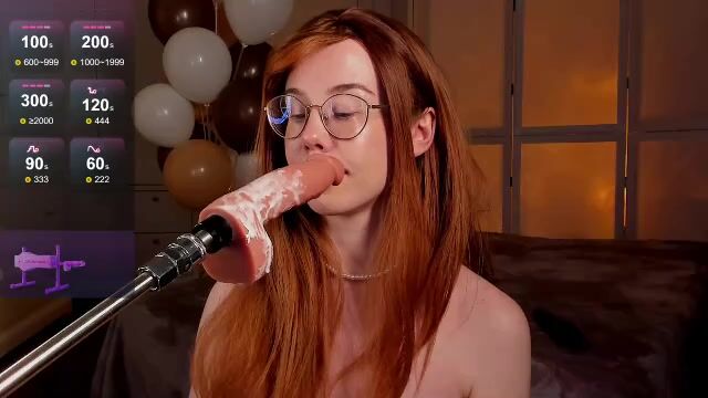 alice Redhead babe sucks rubber cock on camera and chats sweetly