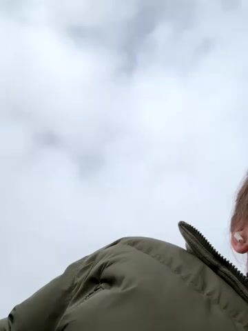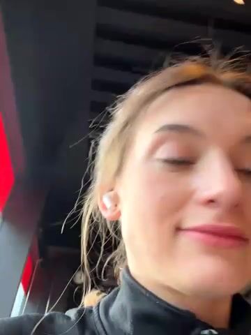 Adorable babe sweetly chatting and teasing in front of the camera in clothes
