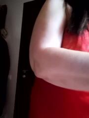 Women A slutty, curvy babe in a beautiful red negligee is chatting sweetly and teasing in front of her camera
