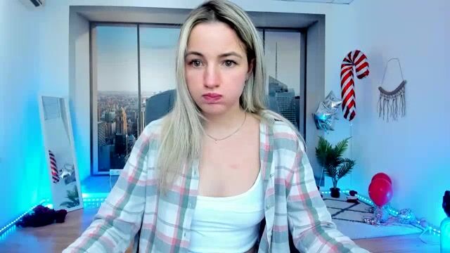 AlicePrings Cute blonde teases in front of the camera and doesn't want to undress
